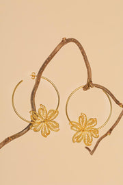 Créoles inspirées des fleurs du gardenia. Elles sont réalisées entièrement à la main selon la technique de la filigrane dont les métaux sont transformés en fils fins puis façonnés pour créer une dentelle.