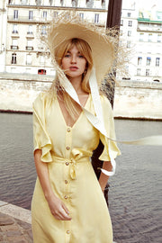 Ce chapeau est rehaussé d'un ruban en gros-grain ivoire qui longe l'avant de sa calotte et se glisse à travers des œillets pour vous permettre de le nouer et de l’ajuster. Faites-en l’accessoire pour vous protéger du soleil lorsque vous vous prélasserez au parc ou à la plage.